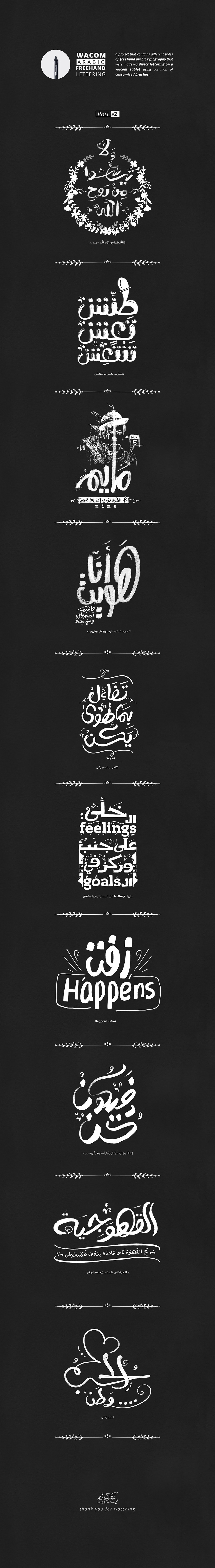 a project that contains different styles of freehand arabic typography that were made via direct lettering on a wacom tablet using variation of customized brushes.